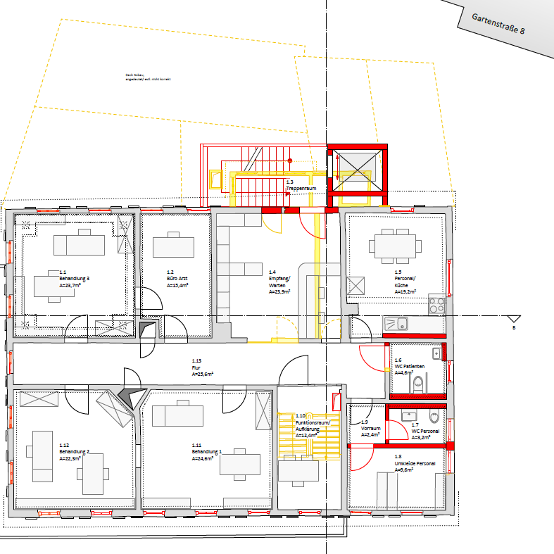 Praxisräume im Obergeschoss – für eine bessere medizinische Versorgung.