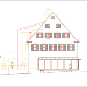 … damit eine großartige Verbindung von Historie und ortsbildprägender Architektur geschaffen wird; mit einer Gastronomie im Erdgeschoss und im Gewölbekeller, mit Außenterrasse, als Treffpunkt für Jung und Alt.